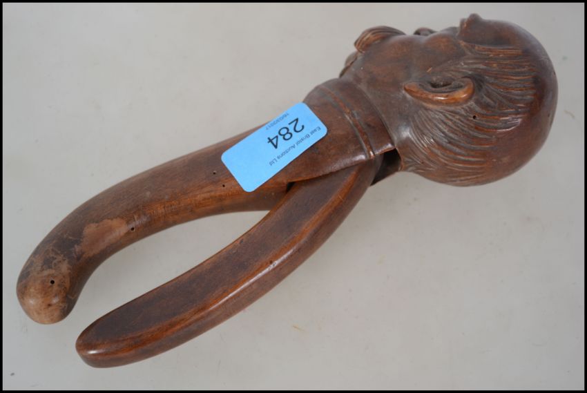 A large pair of 19th century treen worked nut crackers in the form of a gentleman believed to be possibly Lord Kitchener