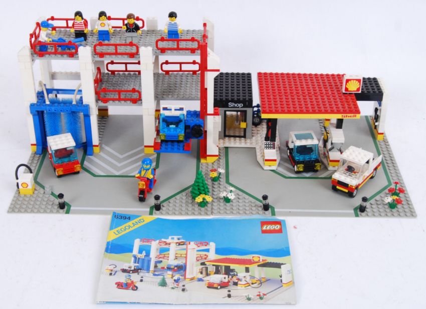 An original vintage Legoland Lego ' Shell Petrol Station & Parking Garage 'set 6394. Fully made, and presumed 100% complete (but unchecked by us). Double based set, with all minifigures and working car lift. With instructions.