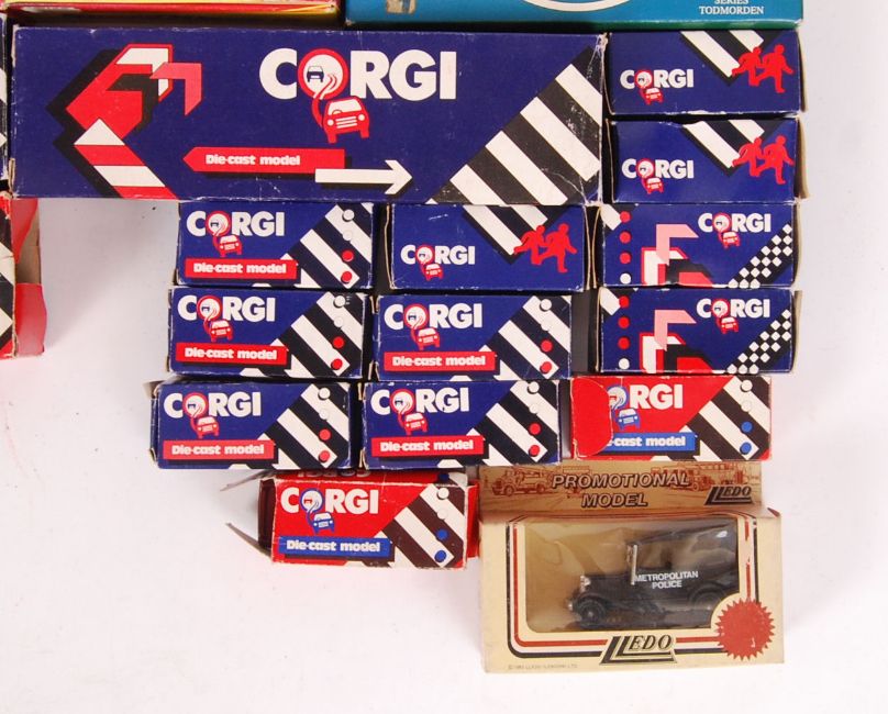 A collection of original Corgi diecast to include; Renault van, Mercedes Benz, 'Welcome To Britain' London buses, Matchbox super fast Mercedes etc. All within their original boxes.