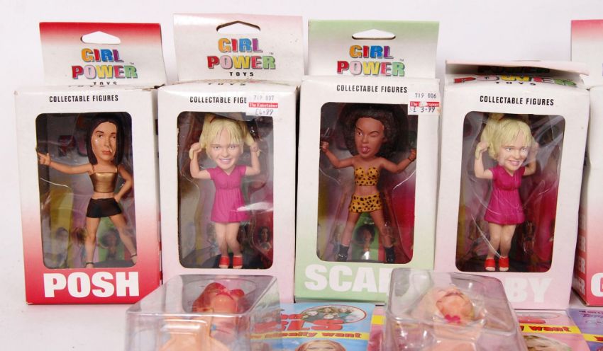 A large collection of approx 14x Spice Girls figures made by Topps etc. Contains some duplicates. All within their original boxes and card backs.