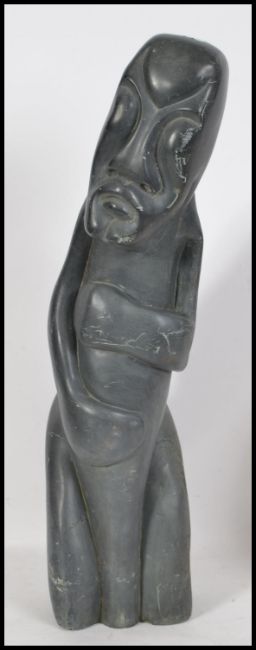 A large unusual African tribal slate - polished ebony stone fertility statue figure. Very tall and very heavy being well carved and polished from a single piece of stone. Measures 62cm high.