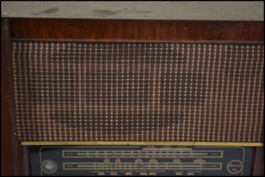 A 1930's walnut cased radiogram of large form having decorative central facia with dials. Original back panel in place.