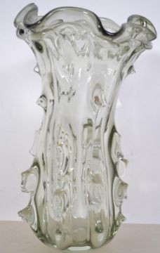 A mid 20th century large studio art glass vase of bark - knobbly form in the manner of Whitefriars in an opaque colourway. Measures 30cm high.