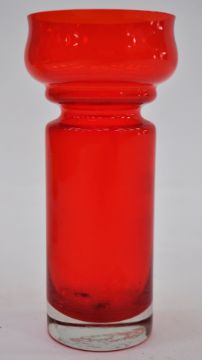 A retro mid century Holmegaard  gulvase smoked glass vase of ovoid form together with a Riihimakivase designed by Tamara Aladin . Measures 25cm high.