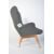 After Finn Juhl, a stunning armchair being raised on tapering turned legs with grey fabric upholstered frame with multi coloured button backing.  Similar footstool in lot 24. Measures 100cm high x 77cm wide x 65cm deep.