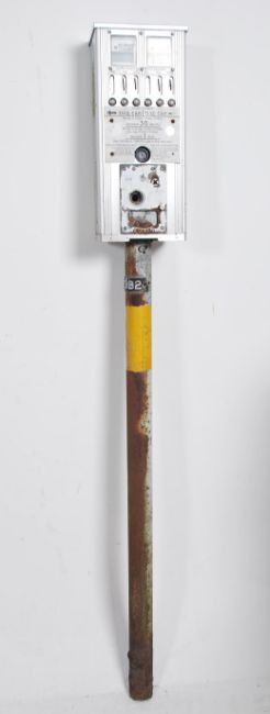 A 1970's Country of Avon parking meter. Coin operated machine with dial and silvered notation all raised on a pole. Measures 160cm long.