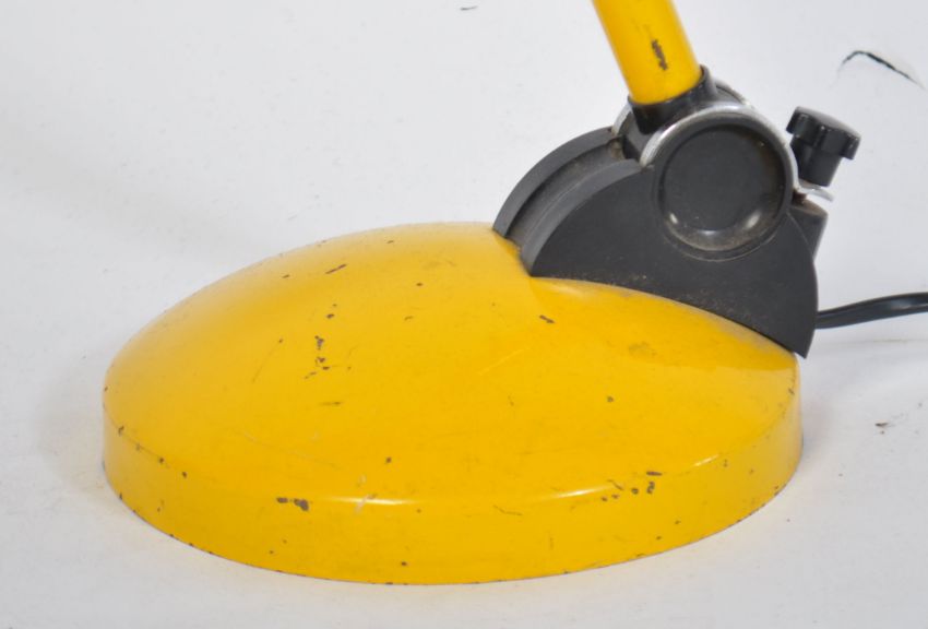 A good late 20th century anglepoise adjustable desk lamp / light in vivid yellow with terraced base and scoop shade of continental origin. Measures 48cm high.