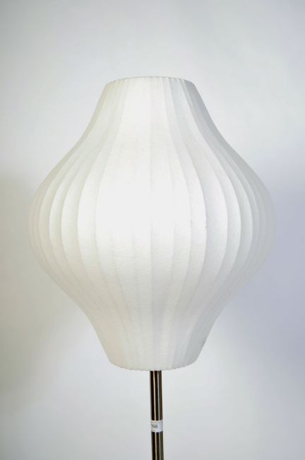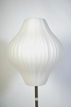 After George Nelson. A floor standing Lotus lamp - standard lamp taken from the 1952 design originally made by Herman Miller. This on a lotus chrome stamp with conical shade. Further matching example in lot 178. Measures 145cm high.