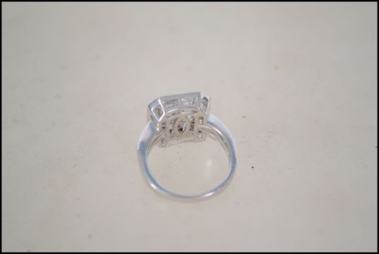 A 925 silver dress ring set with baguette CZ . Weight 4.9g. Size O.