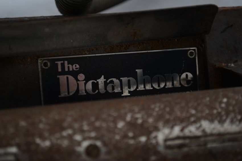 A vintage early 20th century wax cylinder Dictaphone complete with original cover. Originaly from Kingsway House Bristol.