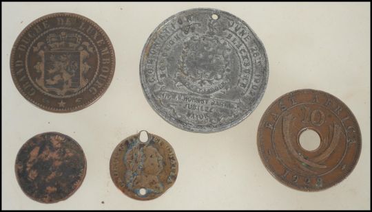 A group of coins to include silver; East Africa George V 10 Cent; a silver Edward VII and Alexandra coronation medal from 1902- Borough Of Blackburn; plus a couple of Roman examples