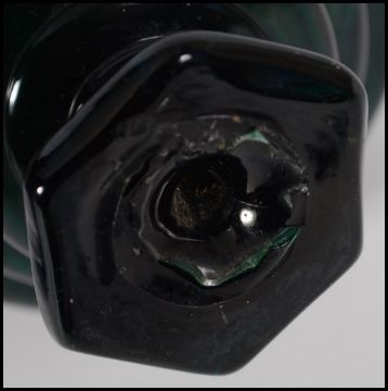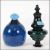 A large end of day blue dump glass with air bubble inclusions and finial to top along with what appears to be a good large glass topper or finial of turret form.