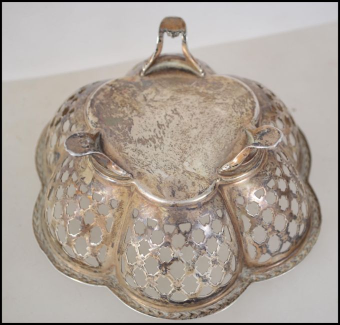 A silver hallmarked fret pierced bon bon dish / bowl being raised on 3 splayed feet. Hallmarked for Henry Clifford Davis, Birmingham 1961. Total weight 74.8g