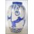 A Longwy style vase on white ground have a geometric border to base  decorated with a continuous chain of upright monkeys in blue. Marked to base.