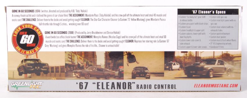 An original 'Gone In 60 Seconds' Greenlight Rc 1:18 '67' Eleanor radio controlled car. Appears complete and within original box.