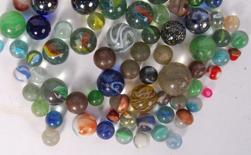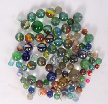 A collection of marbles ( some possibly Victorian) of various shapes and sizes to include; onion skin & blank marbles.