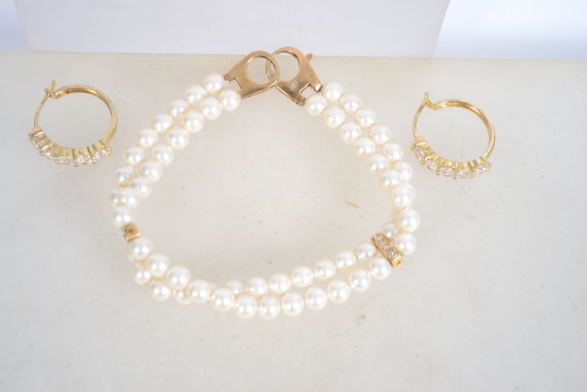 Three pieces of gold plated gilt silver jewellery set with CZ stones to include a necklace, bracelet and a pair of earrings.