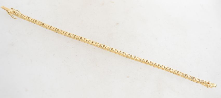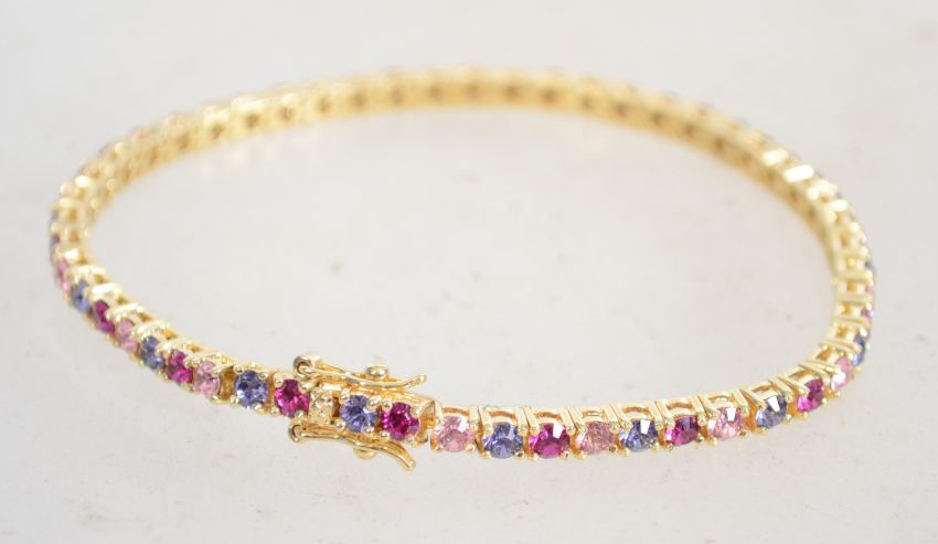A gilt silver tennis bracelet being set with alternating coloured stones.Weighs 9 grams and measures 7 inches.