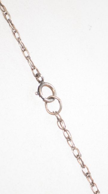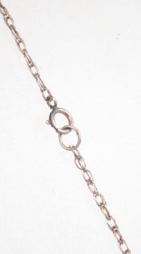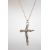 A sterling silver fancy link necklace chain having a bolt ring clasp having an unusual abstract crucifix pendant. Weighs 9.6 grams and chain measures 26 inches long.