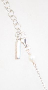 A sterling silver belcher link necklace chain having white bead spacers having a silver heart pendant with a CZ stone set inside a star. Weighs 10.6 grams and measures 18 inches but is adjustable.