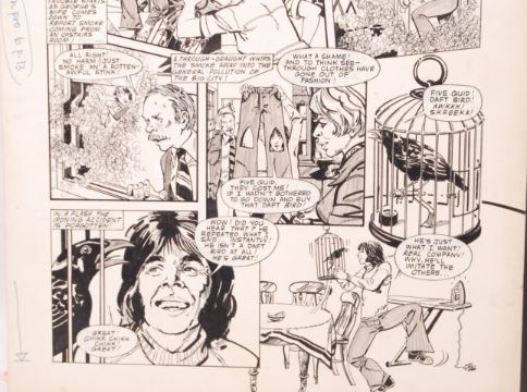 Two panels of original Look-In Annual artwork depicting two panels from a Man About The House / George& Mildred comic strip. Both watercolour and ink. Each panel annotated with notes as to size and location of artwork. Rare. Each approx; 46x35cm.