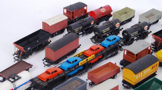 A large collection of assorted 00 gauge model railway trainset rolling stock / wagons / coaches etc. To include Hornby, Hornby Dublo, Lima, Bachmann, Triang and various others. Mostly wagons, a car transporter, various liquid carriers etc. All loose. Note: From a large private collection of 00 gauge locomotives and rolling stock. Boxed items are generally mint unused or lightly used. Loose locomotives are generally used but very good (and generally all in working order). An impressive private collection. Buyers are reminded to satisfy themselves as to condition of individual items prior to bidding as condition of some, will vary.