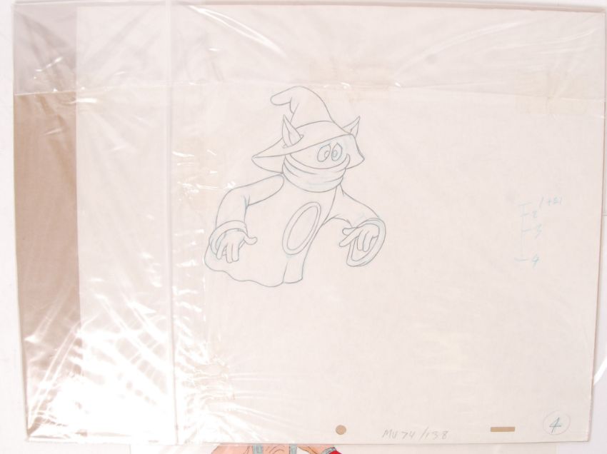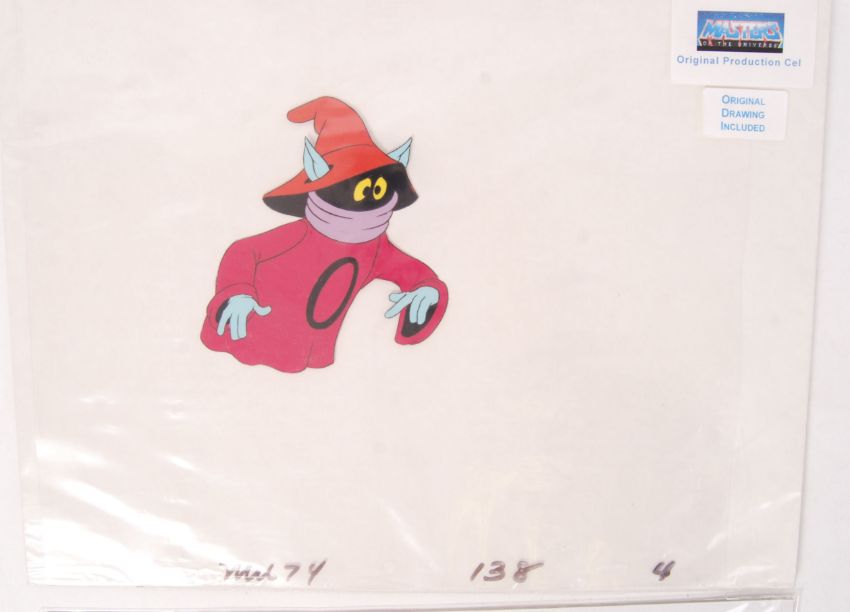 Two vintage 1980's cartoon animation cels. The first being Masters Of The Universe (including the original drawing) and the other a Teenage Mutant Ninja Turtles cel of Kraang. Each used in the original cartoon series.