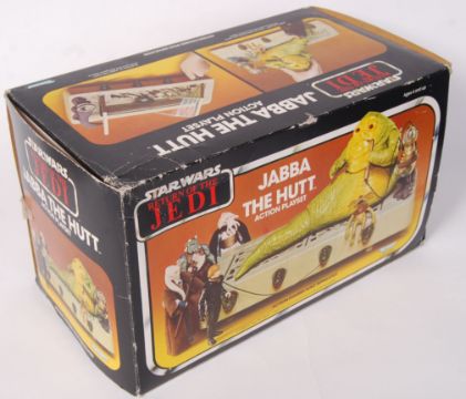 An original vintage Star Wars Kenner made ' Jabba The Hutt Action Playset .' 100% complete, with instructions. Within a good original box. The set appearing unplayed with, with contents mint and all original inner card slips / card inserts. Return Of The Jedi original box. Rare.