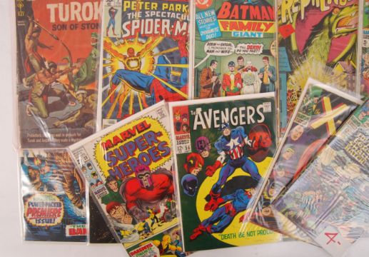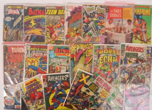 A good collection of assorted vintage 1960's & 1970's DC and Marvel Comics / comic books. To include; Batman, Teen Titans, Turok Son Of Stone, Spider Man, Reptilicus, The Avengers, Strange Tales, Captain Marvel, Superman, Capt. Savage, Sgt. Fury, Secret Six, Ghost Rider, Spider-Woman, Wolverine, The Silver Surfer etc.