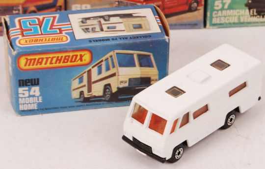 A collection of 10x Matchbox '75' Series diecast models. All within their original boxes. Comprising of; 19, 65, 5, 54, 26, 21, 68, 69, 57 and 61. All appear mint, within the original boxes.