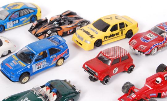 A collection of 14x slot racing cars - to include Scalextric, Hornby and Ninco. Some vintage. Unboxed. To include Mini's, Jaguar, Lister and others.