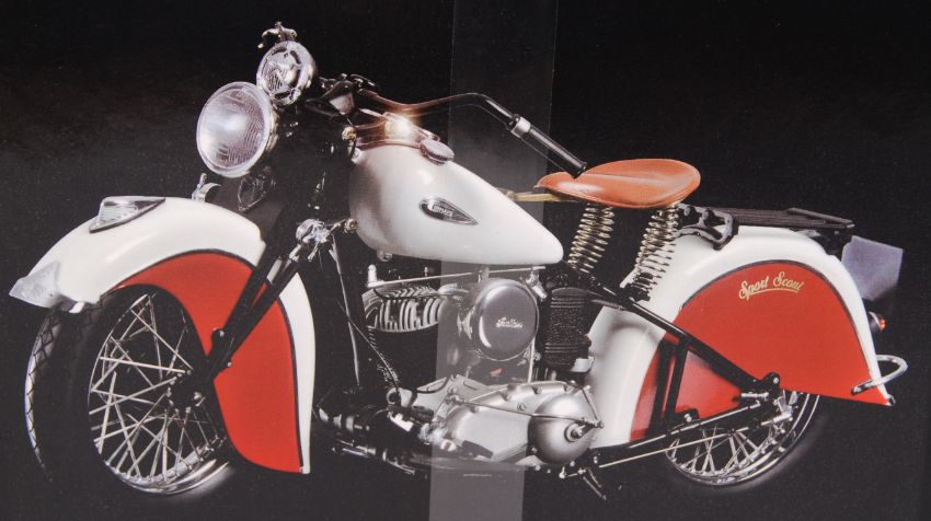 A rare Minichamps 1:12 scale precision diecast model Indian Sport Scout motorcycle / motorbike. As new, mint, within the original presentation box. Unopened, contents still sealed with cellophane band.