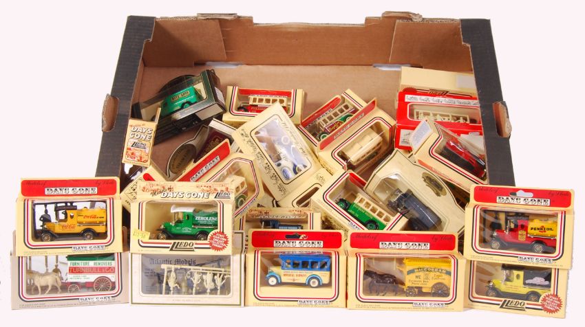 A collection of approx 30x assorted Lledo Days Gone promotional advertising diecast models. All mint, in the original boxes. Mostly Fords and buses.