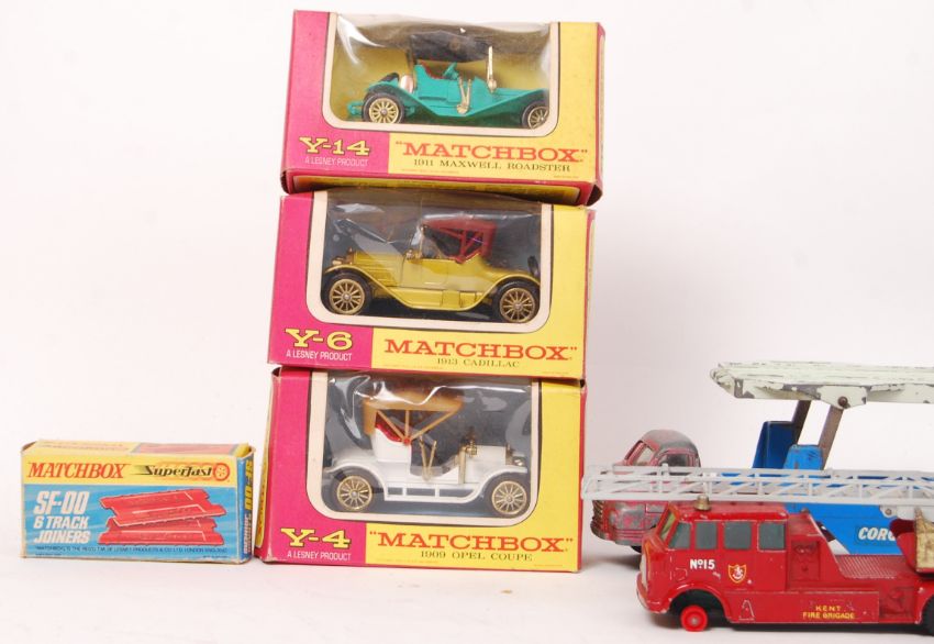 A collection of original Corgi & Matchbox loose & boxed diecast model cars to include; Chipperfields Circus Land Rover & Articulated Horse Box with 3x horses, dropside trailer, car transporter, Y14 Maxwell Roadster, Y6 Cadillac, Y4 Opel Coupe (boxed) etc.