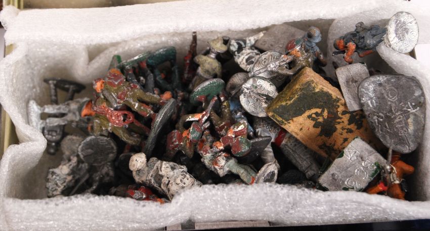 A collection of assorted vintage plastic and diecast model soldiers / figures. To include Airfix, Britains Deetail, Higgins Miniatures and others etc.