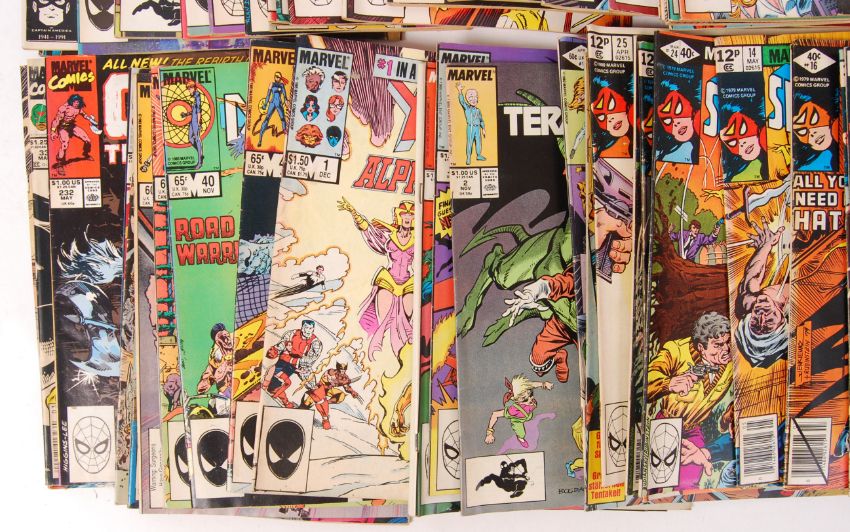 A collection of assorted Marvel Comics comic books - all 1970's / 1980's, comprising of: Dazzler, Excalibur, Spider-Woman, Conant The Barbarian etc. Some runs, some single issues.