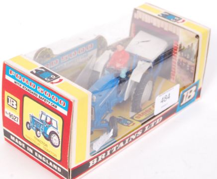 An original vintage ex-shop-stock Britains Farm made 9527 Ford 5000 tractor. Ex-shop-stock, contents mint+ within a near mint original box. Bright original artwork. Rare in such condition.