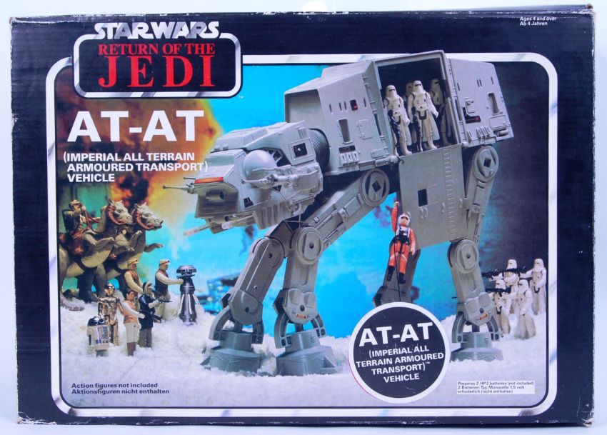 A good original vintage Star Wars Palitoy made ATAT Imperial All Terrain Armoured Transport Vehicle. 100% complete, with all guns (inc chin guns) and covers. Within an original good Return Of The Jedi Box. The box with the original inner card inserts and instructions.