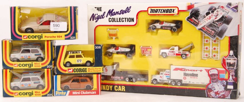 A collection of assorted vintage boxed diecast to include; 5x boxed Corgi models - 321, 308, 178, 201 (x2) and a Matchbox Nigel Mansell Collection set. All within the original boxes.