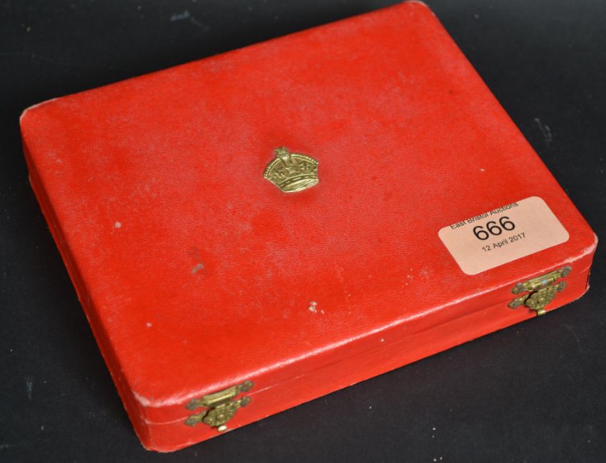 A cased set of silver plated hallmarked anointing spoons being issued for the Coronation 1953. Complete in the red leather case