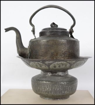 A 19th / 20th century middle eastern hand beaten kettle together with a hand beaten bain - marie. Measures 18cm high.