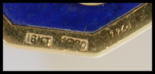 A pair of vintage Art Deco 18ct gold Tiffany and Co earrings of octagonal form. The earrings being set with Lapis Lazuli in an 18ct gold mount having clip backs. Marked T&Co 18KT tests 18ct gold. Measures 2.5cms. Weight 17.1g.