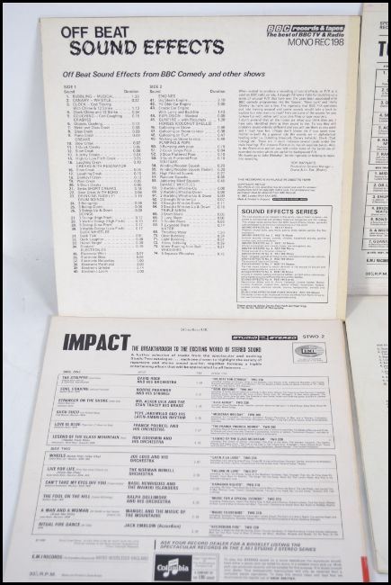 A group of four sound effect long play albums to include Off Beat Sound effects, Total Sound, A Journey Into Stereo Sound and Impact.