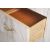 A vintage mid 20th century melamine straight six chest of drawers, brass handles and raised on tapering ebonised legs. Measures 117cm high x 81cm wide x 45cm deep.
