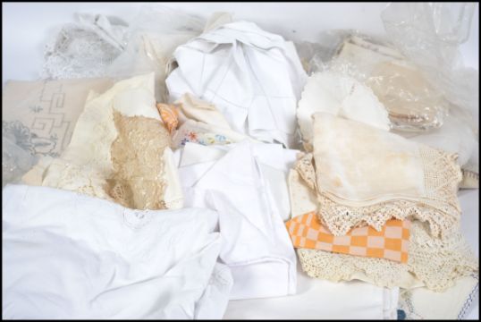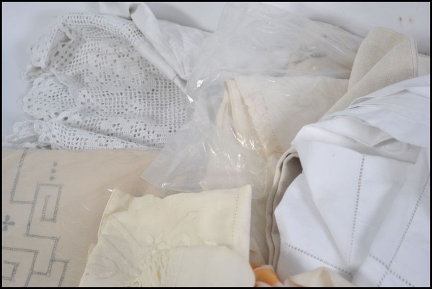 A collection of vintage 20th century linens, dating from the earlier to mid century. Please see images.