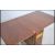 A mid century retro drop leaf harvest table of ply wood construction having cupboard with gilded decoration etc. Measures 76cm high x 75cm wide x 136cm deep.