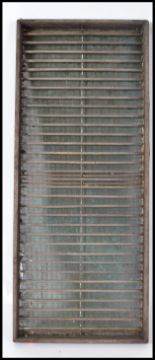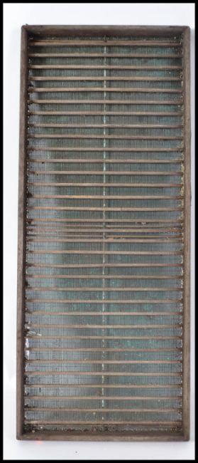 Agricultural seed sorting tray. A hardwood frame and struts with iron meash sieve. This 20th century industrial working piece was used for drying fruit as well as sorting and separating seeds.