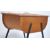 A good mid century sewing box cabinet being raised on angled tapered supports having a half barrel shaped body with hinged sectional cabinets and carry handle to the centre. Measures 58cm high x 48cm wide.