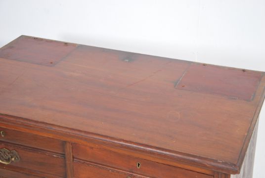 An Edwardian  walnut cottage  chest of drawers with reeded fronts and swing handles with flared top above. Measures 80cm high x 91cm wide and 51cm deep.