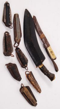 A collection of assorted knives / penknives to include 6x penknives, a Kukri knife and a small Indian dagger. x8 in total.